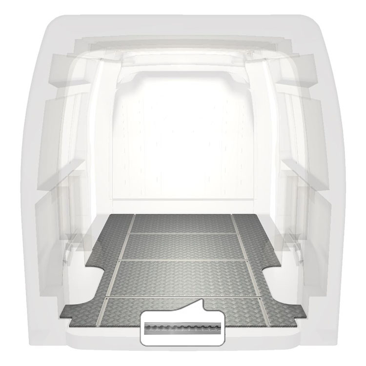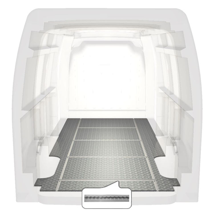 Disponible pour une gamme de modèles de fourgons, notre plancher ultra-léger et robuste avec rails transversaux est muni d’une plaque de roulement en aluminium antidérapant et de rails de chargement (longitudinaux et transversaux) pour une installation rapide et sûre des systèmes de rayonnage et autres accessoires. L’installation du plancher ne nécessite aucun perçage et s’opère à l’aide de colle ultra-adhésive, beaucoup plus efficace que les écrous et les boulons, et qui préserve la valeur résiduelle du véhicule.