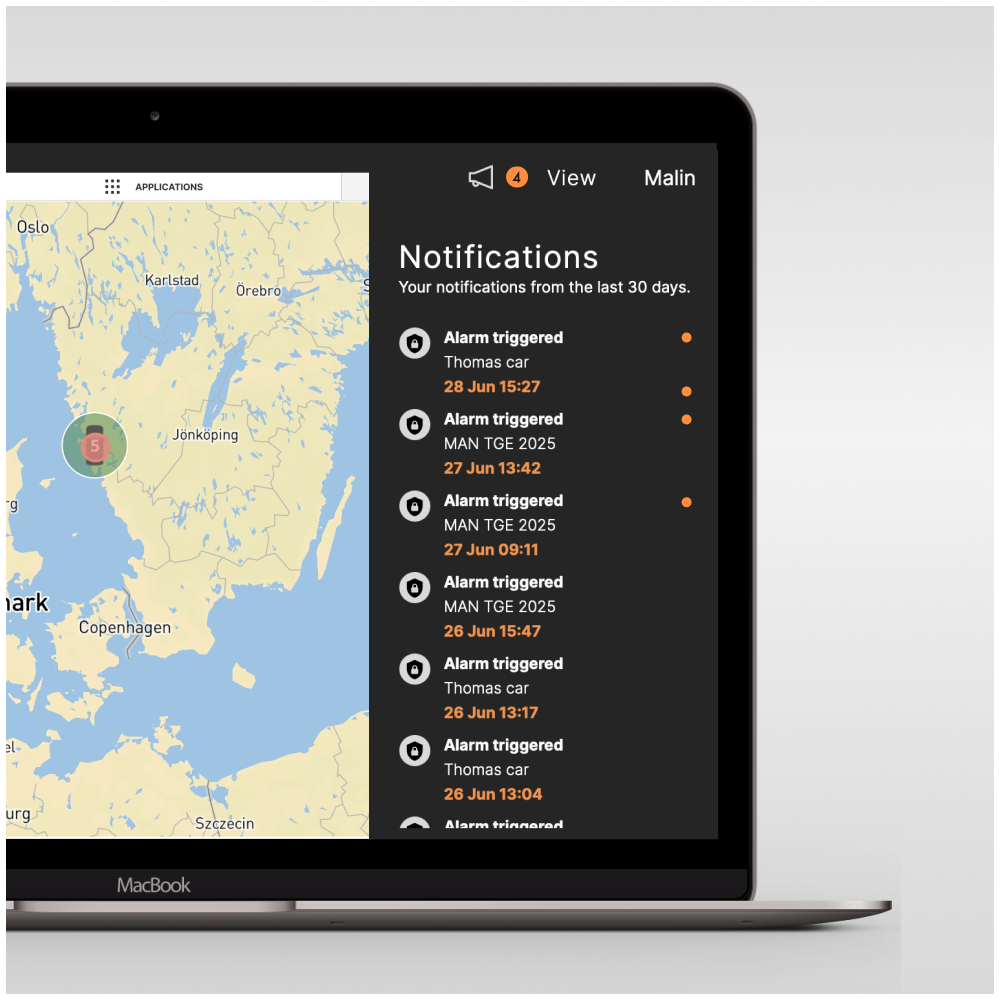 Secure your fleet with motion and contact sensors connected to the Modul-Connect Hub. Use the Modul-Connect app to arm or disarm the alarm system effortlessly and receive instant notifications for any alarm triggers.