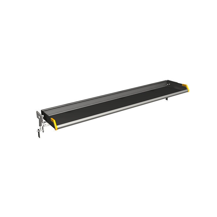 Les étagères rabattables sont disponibles en plusieurs longueurs pour d'adapter au différents modèles de véhicules. Pour faciliter leur utilisation, les étagères sont équipées en standard de vérins à gaz. La conception avec des cotés hauts et un rebord arrière permet d'améliorer le maintien des colis pendant le transport. Le rebord avant et spécialement conçu pour faciliter le déchargement. Chaque étagère a une capacité de charge de 120 kg, et peut être montée avec une inclinaison si nécessaire.