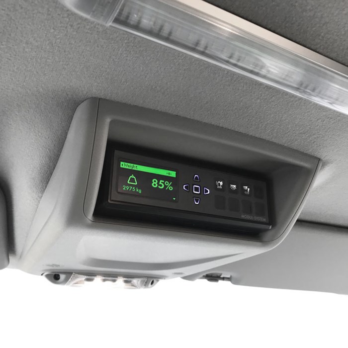 Palet de commutation d'affichage avec écran OLED conçu pour s'adapter à la cabine du véhicule. Les commutateurs rétroéclairés permettent au conducteur de voir facilement quels accessoires sont allumés.