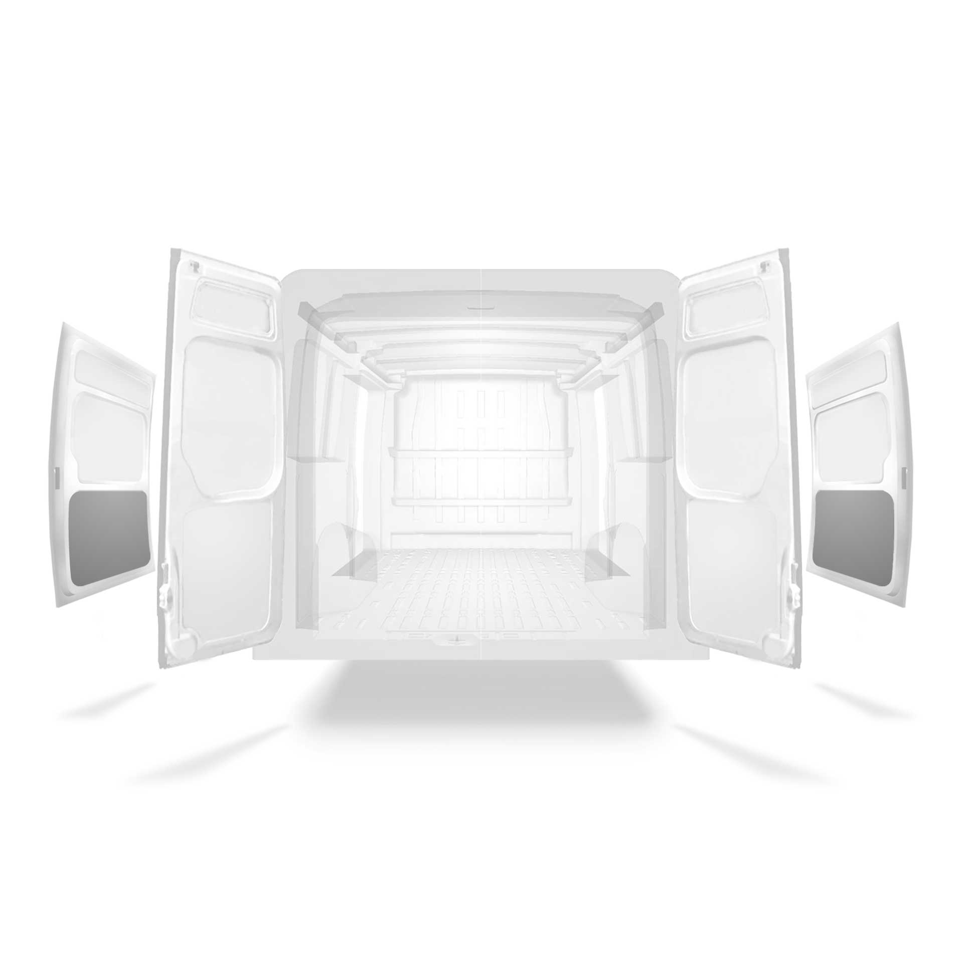 Revêtement léger pour la partie inférieure de la porte latérale d’un Citroën Jumper / Peugeot Boxer / Fiat Ducato équipé de portes latérales doubles. Le revêtement réduit l’usure normale de l’intérieur et contribue à maintenir la valeur résiduelle de l’utilitaire.