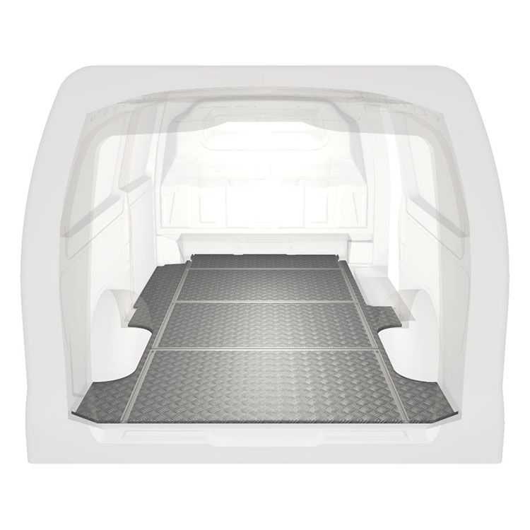 Plancher léger et robuste avec rails transversaux pour une Mercedes Vito avec une plaque de roulement en aluminium antidérapant et des rails de chargement (longitudinaux et transversaux) pour une installation rapide et sûre des systèmes de rayonnage et autres accessoires.