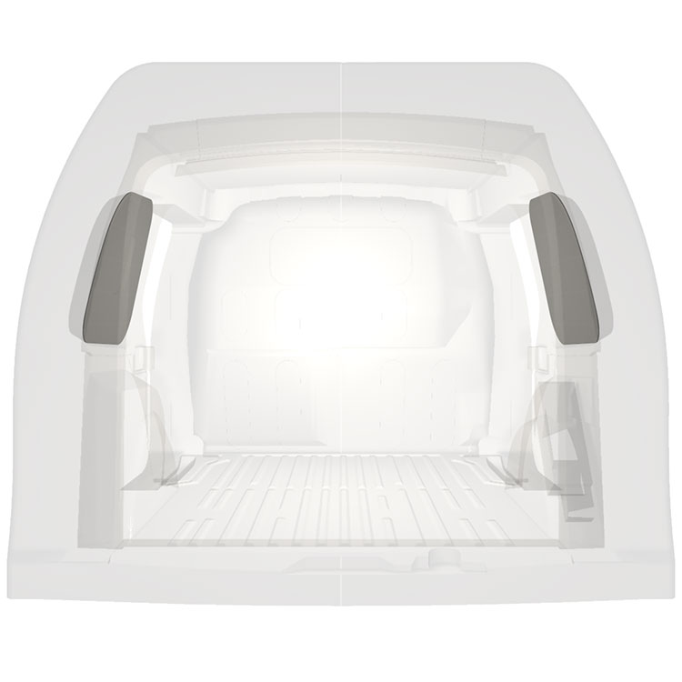 Revêtement léger pré-découpé pour les parois intérieures d’une Mercedes Citan / Renault Kangoo avec doubles portes latérales. Les parois créeront un environnement professionnel lumineux et convivial et se nettoient facilement.