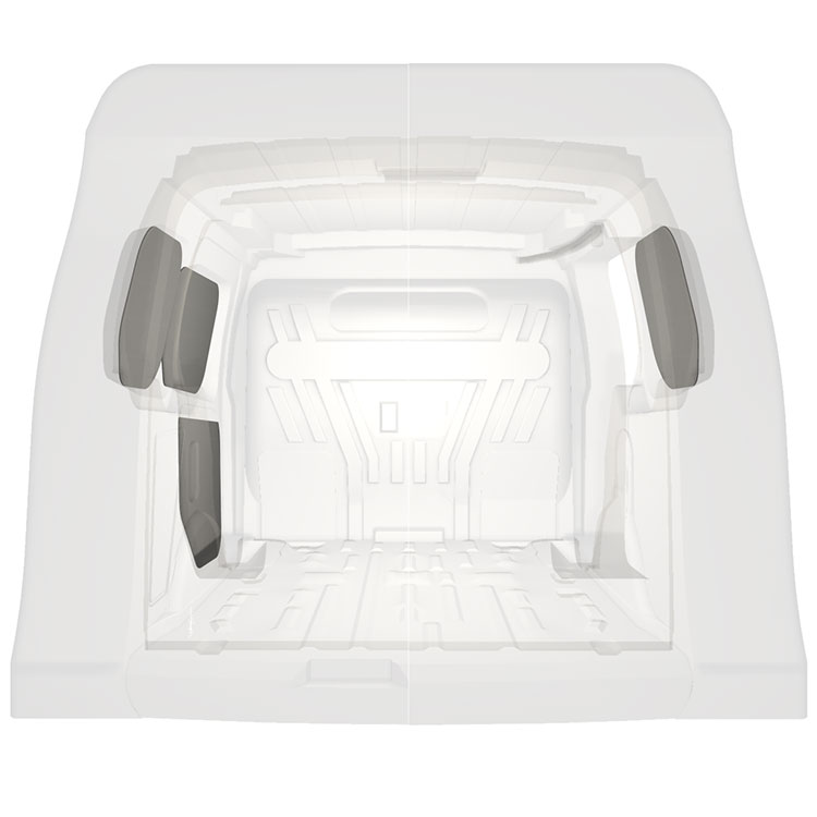 Afin d’optimiser le poids, les revêtements pré-découpés sont fabriqués de manière à adapter uniquement l’espace entre les poutres du véhicule, veillant ainsi à ne pas être gênant et à optimiser l’espace.