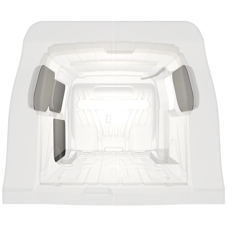 Afin d’optimiser le poids, les revêtements pré-découpés sont fabriqués de manière à adapter uniquement l’espace entre les poutres du véhicule, veillant ainsi à ne pas être gênant et à optimiser l’espace.