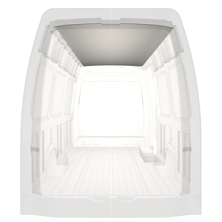 Revêtement léger pour toit d’une Mercedes Sprinter. Le revêtement de toit créera une finition de travail lumineuse à l'intérieur et un environnement professionnel convivial.