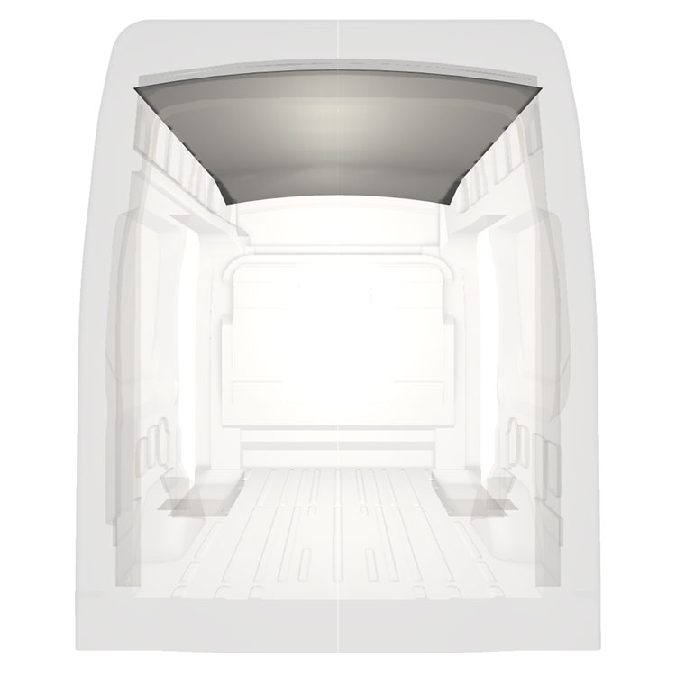 Revêtement léger pour toit d’une Ford Transit. Le revêtement de toit créera une finition de travail lumineuse à l'intérieur et un environnement professionnel convivial.