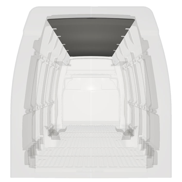 Revêtement léger pour toit d’une Iveco Daily. Le revêtement de toit créera une finition de travail lumineuse à l'intérieur et un environnement professionnel convivial.