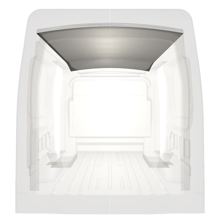 Revêtement léger pour toit d’une Ford Transit. Le revêtement de toit créera une finition de travail lumineuse à l'intérieur et un environnement professionnel convivial.