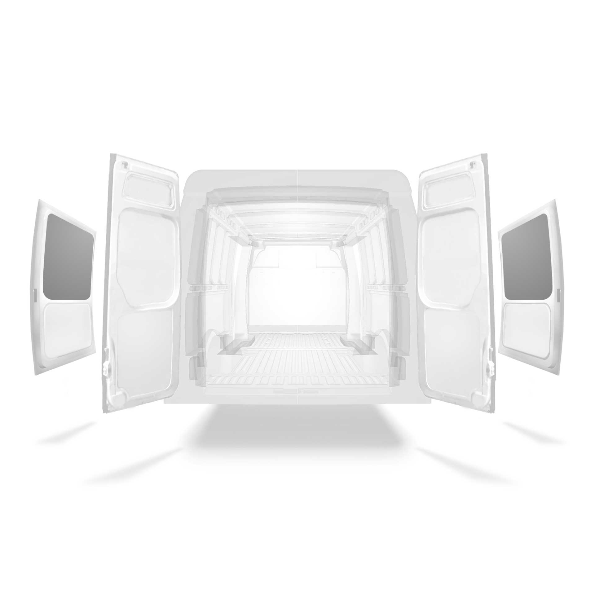 Revêtement léger pour la partie supérieure de la porte latérale d’une Iveco Daily avec doubles portes. Le revêtement réduira l’usure normale à l'intérieur et contribuera à maintenir la valeur résiduelle de l’utilitaire.