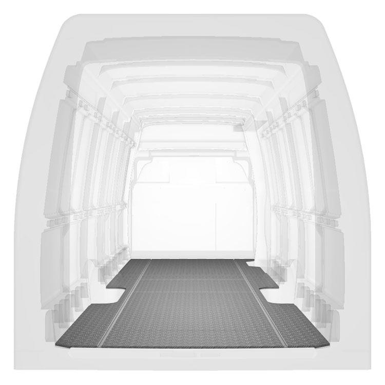 Plancher standard ultra-léger et robuste pour une Iveco Daily avec une plaque de roulement en aluminium antidérapant et des rails de chargement (longitudinaux) pour une installation rapide et sûre des systèmes de rayonnage et autres accessoires.