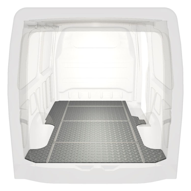 Plancher léger et robuste avec rails transversaux pour une Mercedes Sprinter avec une plaque de roulement en aluminium antidérapant et des rails de chargement (longitudinaux et transversaux) pour une installation rapide et sûre des systèmes de rayonnage et autres accessoires.