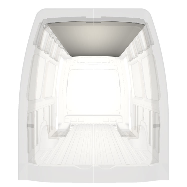 Revêtement léger pour toit d’une Mercedes Sprinter. Le revêtement de toit créera une finition de travail lumineuse à l'intérieur et un environnement professionnel convivial.