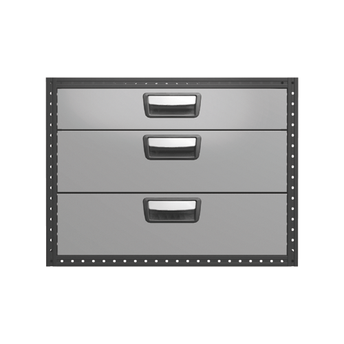 Chaque tiroir est équipé en version standard de glissières sur roulements à billes et sa charge maximale est de 30 kg, tandis que la charge totale par bloc est de 100 kg. Les tiroirs peuvent être ouverts à fond et sont équipés d'arrêtoirs. Pour une utilité maximum, le bloc-tiroirs peut être équipé d'accessoires tels que fond en mousse, séparations et casiers en plastique. Afin d'optimiser le poids, des tôles de fermeture acier et des panoplies sont disponibles en option.