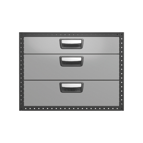 Chaque tiroir est équipé en version standard de glissières sur roulements à billes et sa charge maximale est de 60 kg, tandis que la charge totale par bloc est de 150 kg.