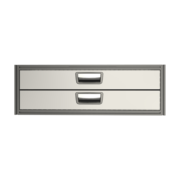Chaque tiroir est équipé en version standard de glissières sur roulements à billes et sa charge maximale est de 30 kg, tandis que la charge totale par bloc est de 100 kg. Les tiroirs peuvent être ouverts à fond et sont équipés d'arrêtoirs. Pour une utilité maximum, le bloc-tiroirs peut être équipé d'accessoires tels que fond en mousse, séparations et casiers en plastique. Afin d'optimiser le poids, des tôles de fermeture acier et des panoplies sont disponibles en option.