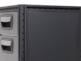 Plaques lisses pour montage dans des modules comme les blocs-tiroirs et les armoires de passage de roue. Les panneaux se montent au moyen de clips.