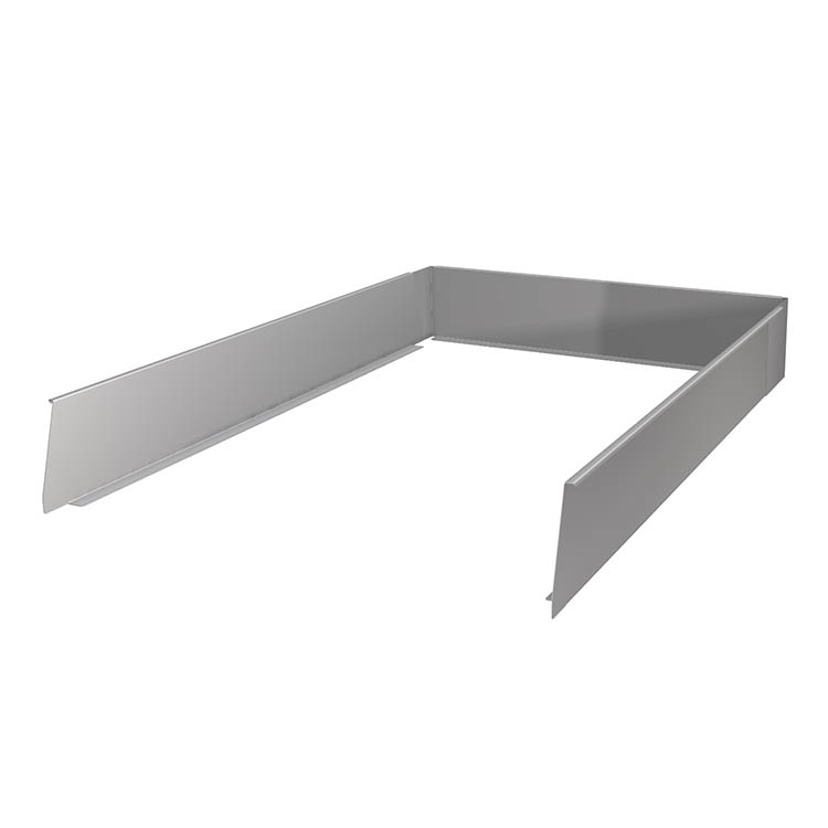 Le rebord du plateau de chargement est monté sur les rails en T du plateau et permet de s’assurer que les produits restent solidement fixés au plateau. Le rebord comprend trois côtés par défaut, et la face avant est proposée en option.