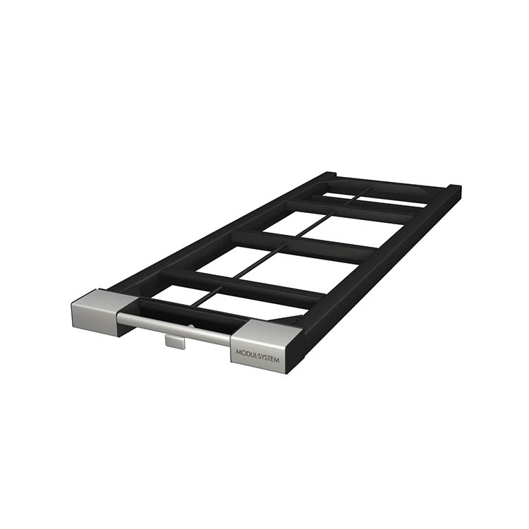 Châssis léger et robuste en acier ultra-résistant avec partie avant en aluminium anodisé. Un plateau de chargement peut être monté sur le châssis de base pour une fonctionnalité accrue.