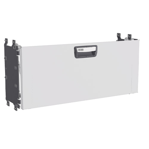 La structure peut se placer au-dessus du passage de roue et former ainsi une base très stable pour les blocs-tiroirs et / ou les armoires d'une capacité de charge maximum de 200 kg. La hauteur libre est de 351/459 mm. Ajoutez des panneaux de revêtement à la structure (jeu pour tiroir horizontal), une porte rabattable ou une porte EGS qui s'ouvre verticalement vers le haut. Un plan de travail peut être ajouté pour créer une surface de travail supplémentaire.