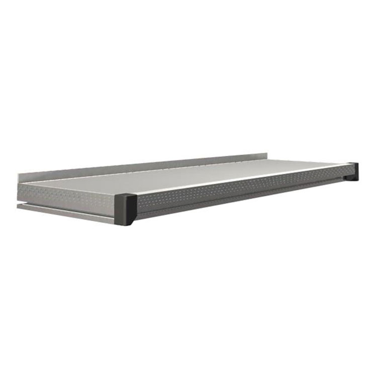 Le profil des bordures en aluminium améliore la robustesse et donne à l’établi une belle finition. Le bord arrière plus élevé empêche les objets de tomber derrière la table. L’installation est facilitée grâce aux rails en T intégrés des profilés aluminium.