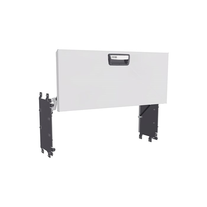 Ces portes équipées de 2 vérins pneumatiques sont conçues pour s’ouvrir vers le haut afin de libérer au maximum l’espace au sol. Elles facilitent le chargement et améliorent l’ergonomie pour l’usager. Il est à noter que
