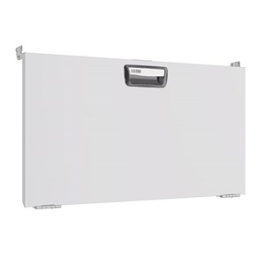 Les portes rabattables sont équipées de vérins pneumatiques des deux côtés, assurant une ouverture et une fermeture en douceur. L’angle d’ouverture est de 90 degrés. La poignée de porte est munie d'un verrouillage de sécurité intégré qui en empêche l'ouverture lorsque le véhicule est en marche. La porte est également compatible avec les cadres de passage de roue équipés de plans de travail. Le montage de portes entre deux étagères requiert l'utilisation d'un cadre de montage.