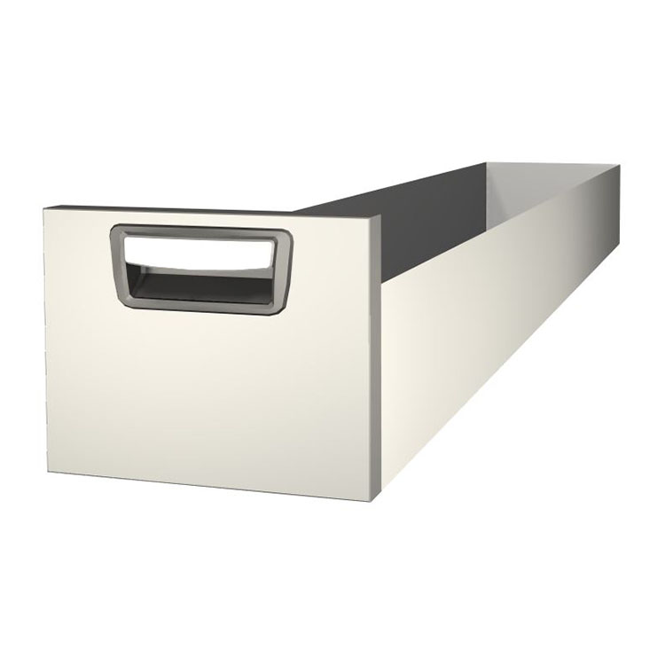 Tiroir extra-long robuste à monter dans une structure de bloc-tiroirs. Le tiroir en aluminium possède des roulements à billes en standard et la combinaison de roulements fixes et flexibles rend le tiroir stable et facile à utiliser.