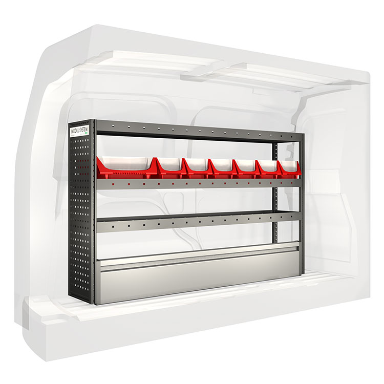 Ce système d’aménagement a été spécialement conçu pour assurer une adaptation optimale ainsi que la meilleure fonctionnalité et sécurité possible. Il a été développé pour un usage professionnel, est flexible et est destiné à des métiers de services dans des domaines variés. Toutes les étagères sont équipées de tapis caoutchouc, et tous les tiroirs de tapis mousse. Les composants d’assemblage et de fixation sont inclus.
