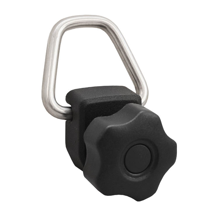 Œillet d’arrimage avec système d’ouverture rapide pour fixation directe sur le rail en T (M8) de la barre de toit.