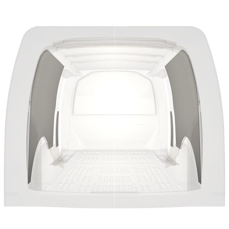 Revêtement entièrement léger pour les parois intérieures d’une Volkswagen Transporter T6 avec doubles portes latérales. Les parois créeront un environnement professionnel lumineux et convivial et se nettoient facilement.