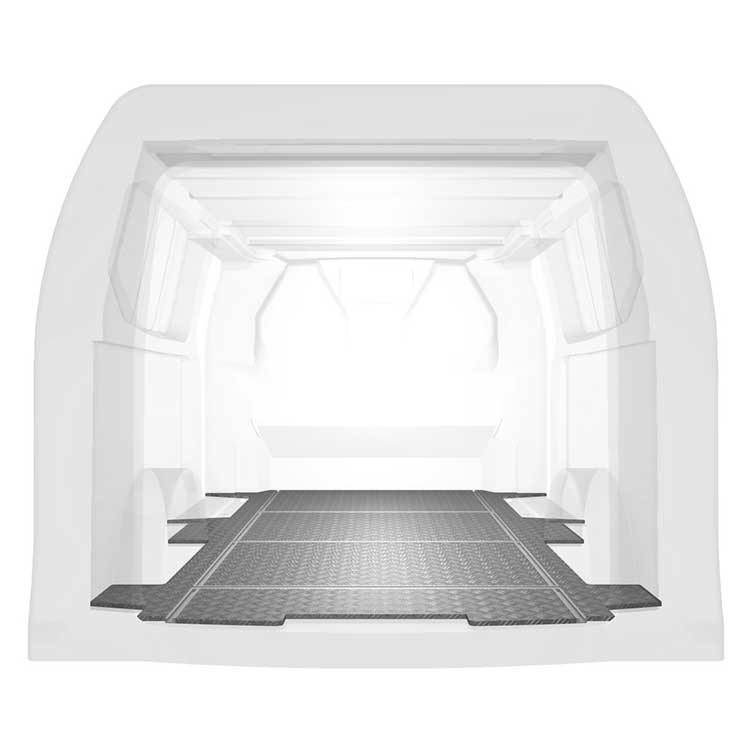 Onze lichte en robuuste vloeren met rails in de breedterichting zijn verkrijgbaar voor uiteenlopende modellen en zijn voorzien van een aluminiumplaat met antislip en ladingrails (in lengte- en breedterichting) voor het snel en veilig installeren van inrichtingssystemen en andere accessoires. De vloer wordt zonder boren met zeer sterke lijm gemonteerd. Dit is sterker dan moeren en bouten en zorgt dat de restwaarde van het voertuig behouden blijft.