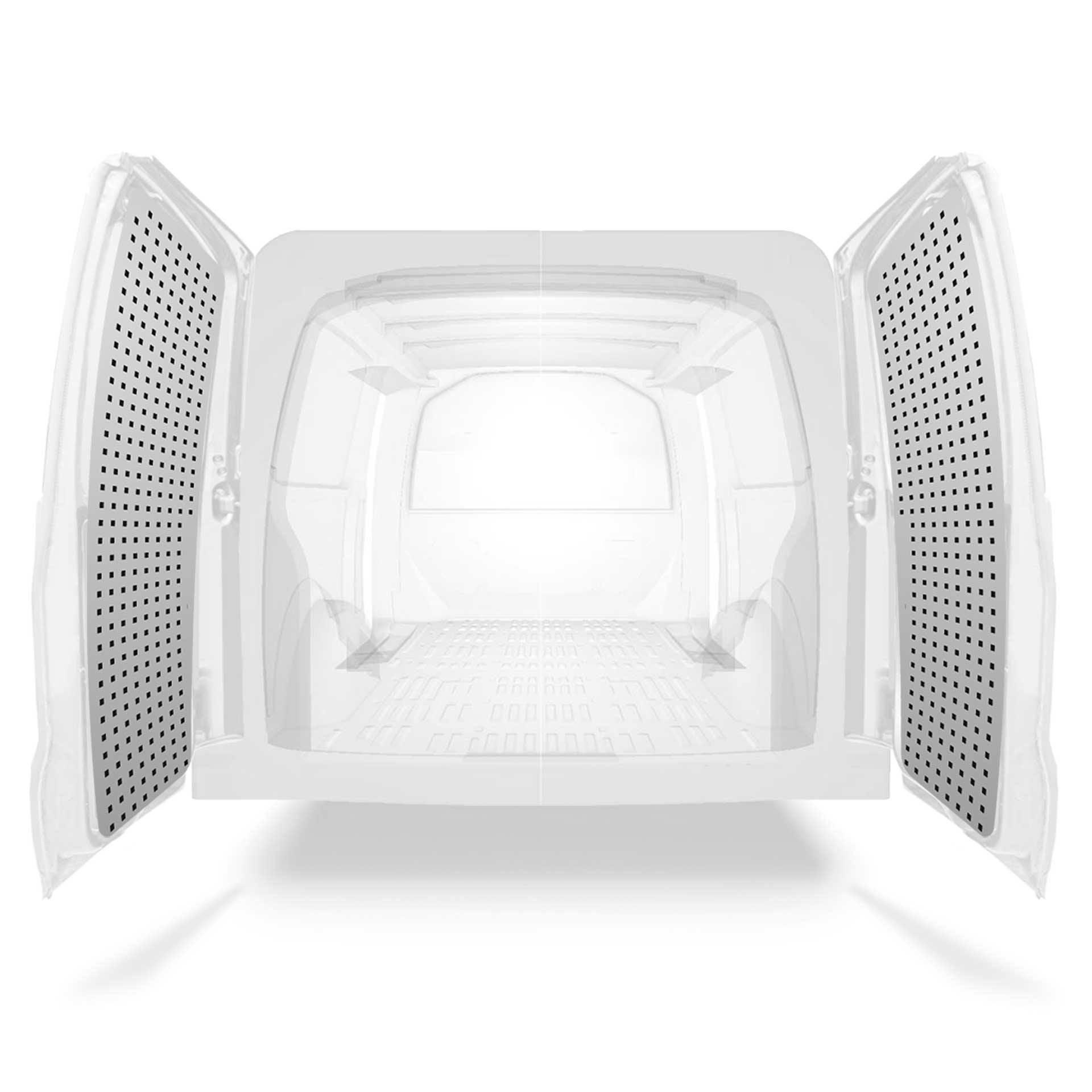 Let er tevens op dat het bevestigingsmateriaal dat wordt meegeleverd met elke kit bedoeld is voor installatie op de carrosserie. Beugels voor montage zonder boren in de vloer en muurrails worden afzonderlijk geleverd.