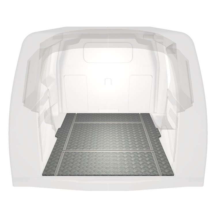 De vloer wordt zonder boren met zeer sterke lijm gemonteerd. Dit geeft een sterkere installatie dan moeren en bouten, terwijl de restwaarde van het voertuig behouden blijft.