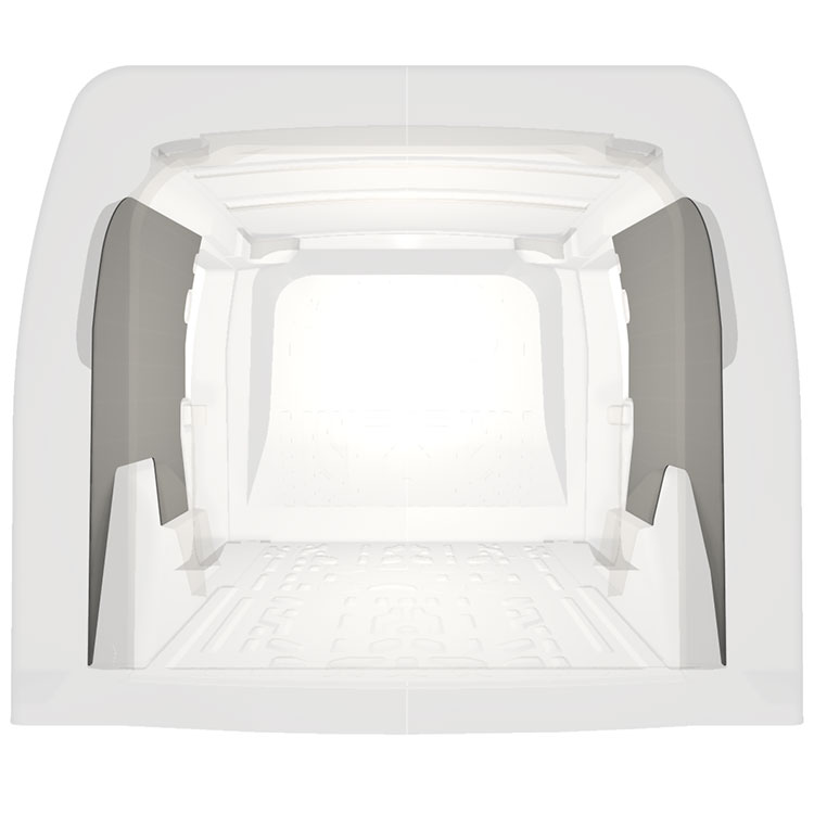 Lichtgewicht volledige bekleding voor de binnenwanden van een Opel Combo / Fiat Doblò met dubbele zijportieren. De bekleding zorgt voor een lichte, aangename werkomgeving en is makkelijk schoon te vegen.