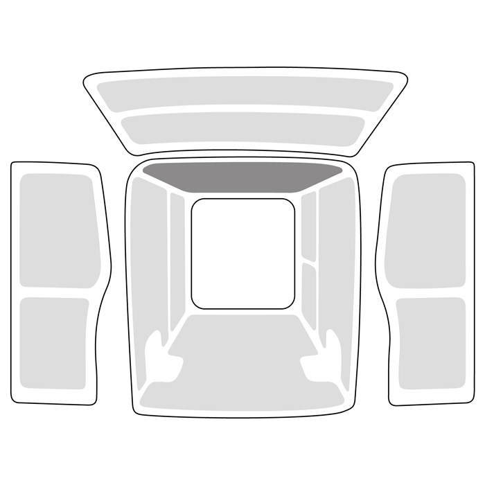Lichtgewicht bekleding voor het dak van een Mercedes Citan / Renault Kangoo 21- met een zijportier aan de rechterkant. De dakbekleding zorgt voor een lichte, professionele afwerking aan de binnenkant en een aangename werkomgeving.
