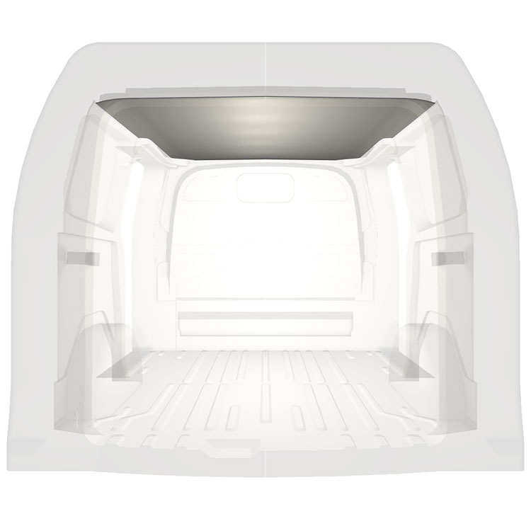 Lichtgewicht bekleding voor het dak van een Ford Transit Custom. De dakbekleding zorgt voor een lichte, professionele afwerking aan de binnenkant en een aangename werkomgeving.