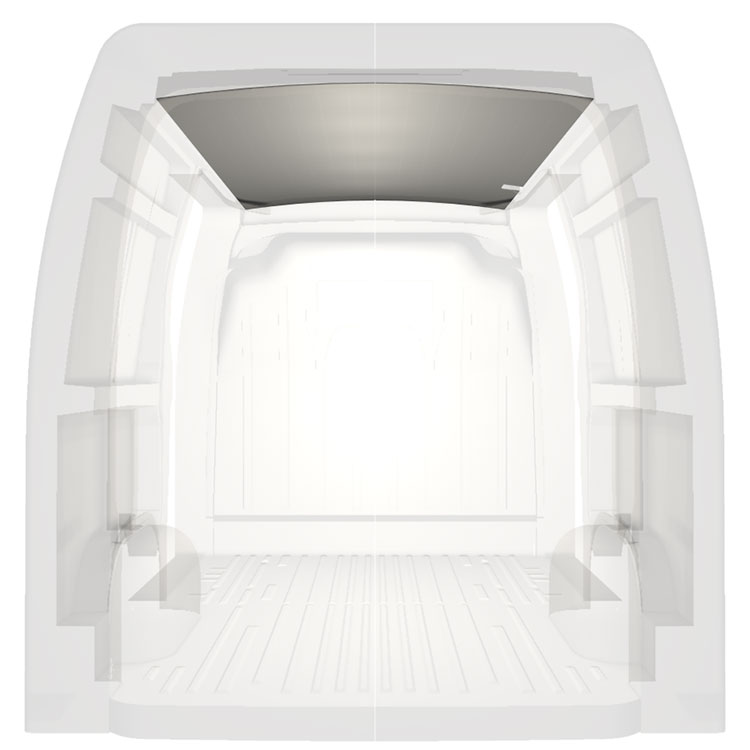 Lichtgewicht bekleding voor het dak van een Renault Master / Opel Movano / Nissan NV400. De dakbekleding zorgt voor een lichte, professionele afwerking aan de binnenkant en een aangename werkomgeving.