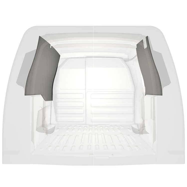 Lichtgewicht volledige bekleding voor de binnenwanden van een Citroën Berlingo/Peugeot Partner met een zijportier aan de rechterkant.De bekleding zorgt voor een lichte, aangename werkomgeving en is makkelijk schoon te vegen.