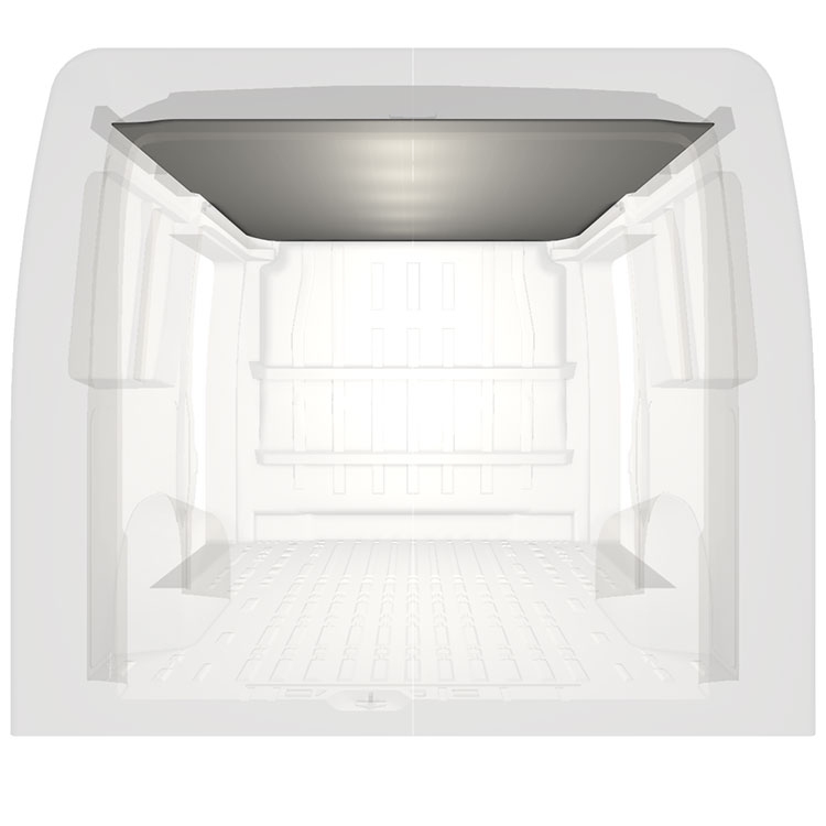 Lichtgewicht bekleding voor het dak van een Citroën Jumper / Peugeot Boxer / Fiat Ducato. De dakbekleding zorgt voor een lichte, professionele afwerking aan de binnenkant en een aangename werkomgeving.