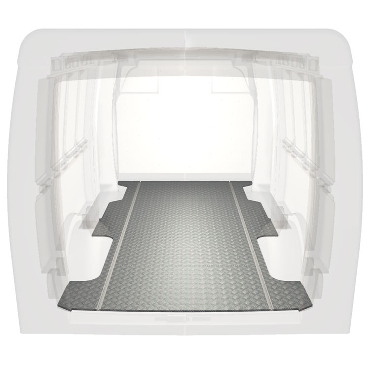Lichtgewicht, robuuste extra lange vloer voor een Iveco Daily met antislip-instaplijst van aluminium en cargorails (in de lengte) voor een snelle en veilige installatie van inrichtingssystemen en andere accessoires.