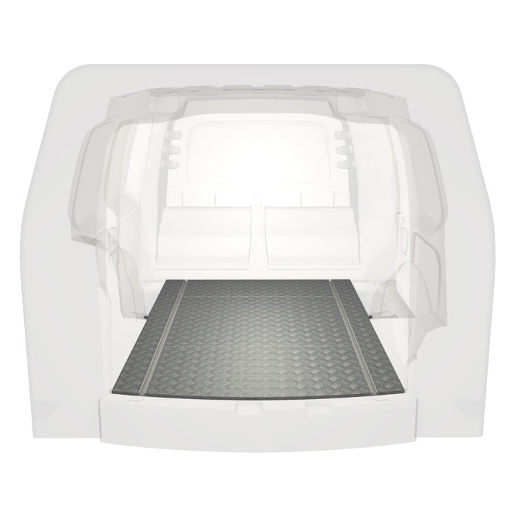 Lichtgewicht, robuuste standaard-bestelwagenvloer voor een Volkswagen Caddy Cargo 20- met antislip-instaplijst van aluminium en cargorails (in de lengte) voor een snelle en veilige installatie van inrichtingssystemen en andere accessoires.