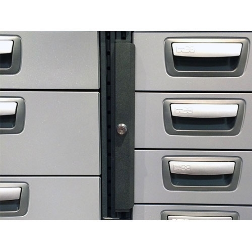 Het slot wordt gemonteerd op de T-rails en kan tot drie laden tegelijkertijd afsluiten. Het slot kan overall op het system geplaatst worden en kan ook uitschuifbare kofferladen afsluiten. Voor laden geplaatst in de rijrichting, kan het tevens als extra beveiliging dienen in geval van een noodstop.