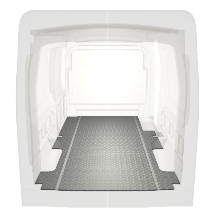 Lichtgewicht, robuuste extra lange vloer voor een Ford Transit met antislip-instaplijst van aluminium en cargorails (in de lengte) voor een snelle en veilige installatie van inrichtingssystemen en andere accessoires.