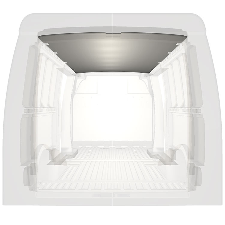 Lichtgewicht bekleding voor het dak van een Iveco Daily. De dakbekleding zorgt voor een lichte, professionele afwerking aan de binnenkant en een aangename werkomgeving.