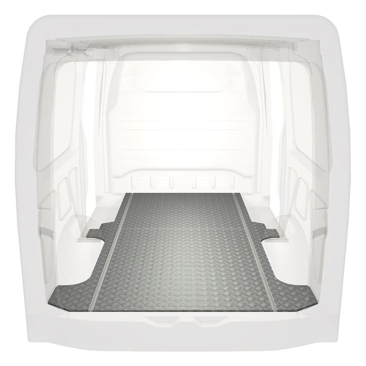 Lichtgewicht, robuuste standaard-bestelwagenvloer voor een Mercedes Sprinter met antislip-instaplijst van aluminium en cargorails (in de lengte) voor een snelle en veilige installatie van inrichtingssystemen en andere accessoires.