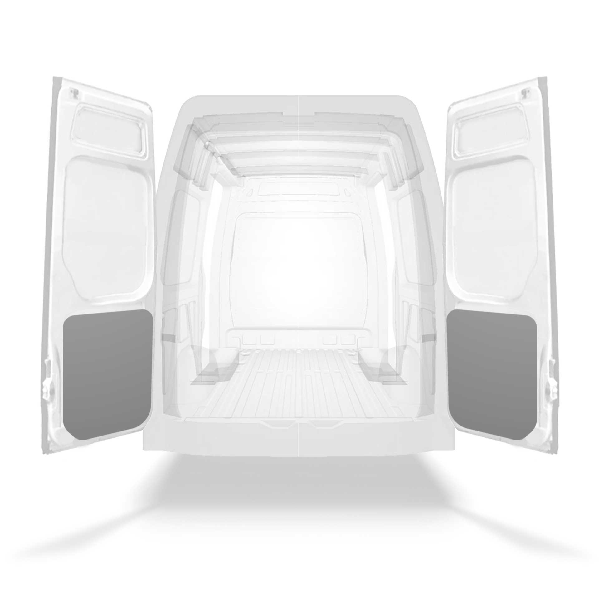 Lichtgewicht bekleding voor het onderste paneel van het achterportier voor een Mercedes Sprinter met dubbele deuren. De deurbekleding is ontworpen om de binnenkant een professionele afwerking te geven, beschermt de bestelwagen en is eenvoudig schoon te vegen.