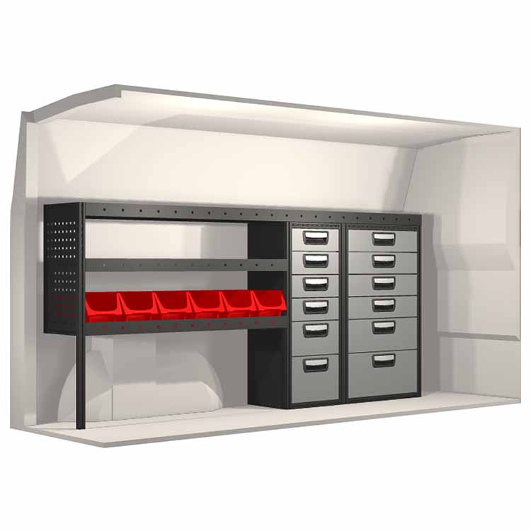 De modulaire lichtgewicht inrichting is speciaal ontwikkeld zodat het optimaal past in het voertuig en geschikt is voor iedere branche.