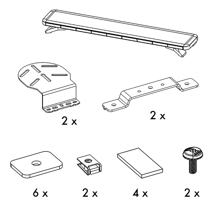 Kit bestaande uit een verlichtingsbalk en een complete set beugels voor rechtstreekse installatie op de OEM-bevestigingspunten van het voertuig. Door de geïntegreerde bevestigingspunten te gebruiken, hoeven er geen onnodige gaten in het voertuig te worden geboord, zodat er geen risico van corrosie is en de restwaarde van het voertuig wordt beschermd.