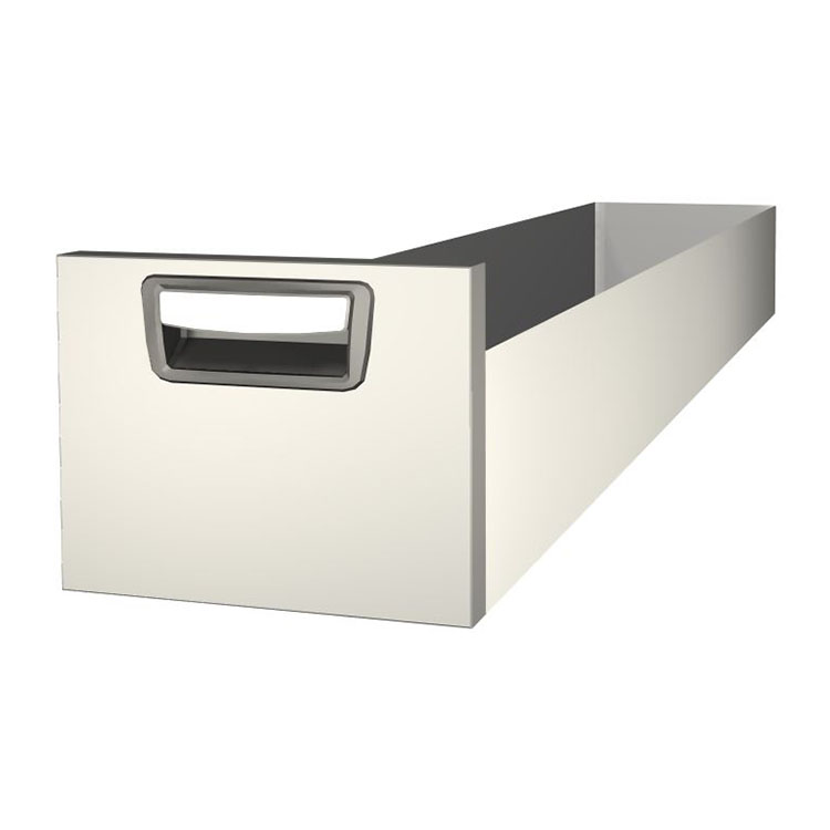 Robuuste extra diepe lade voor montage in een ladeblokframe. De lade is gemaakt van aluminium en heeft standaard kogellagers. De mix van vaste en flexibele lagers maakt de lade stabiel en eenvoudig te gebruiken.